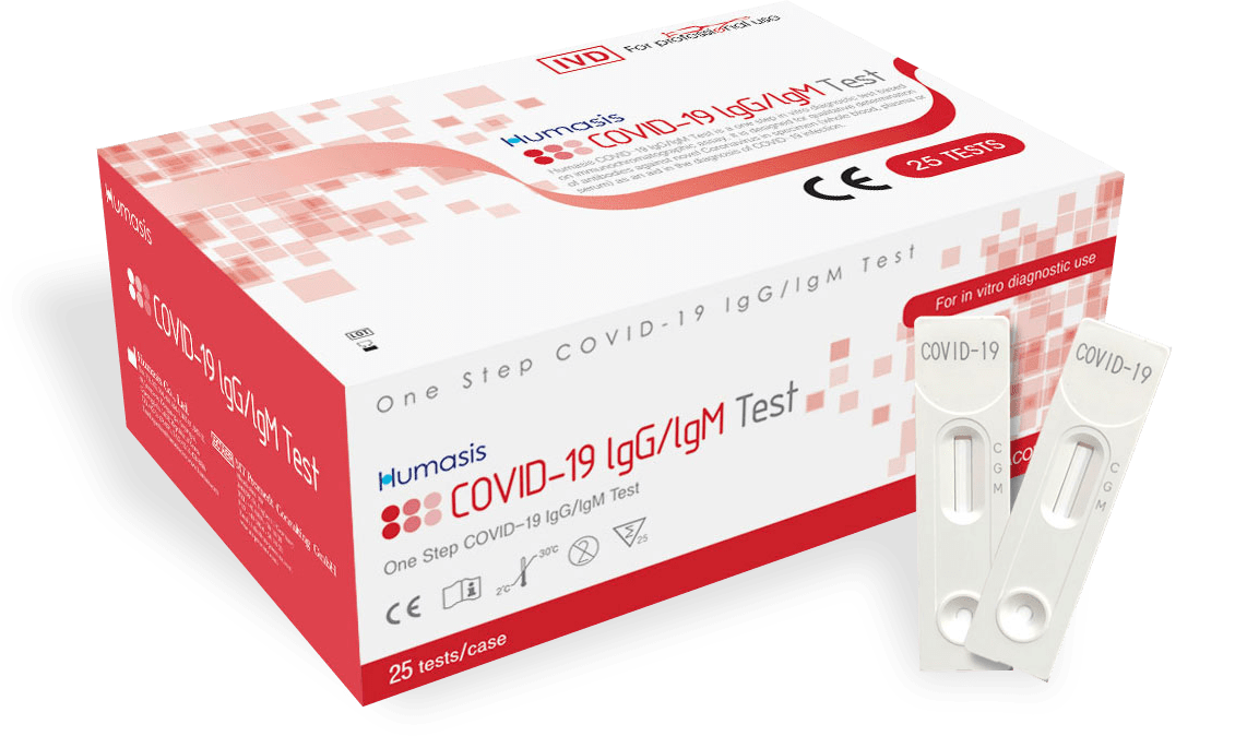 Test Humasis COVID-19 IgG/IgM je in-vitro zdravotnický prostředek. Jedná se o rychlý imunochromatografický test, který detekuje přítomnost IgG a IgM protilátek proti COVID-19 v lidské krvi.