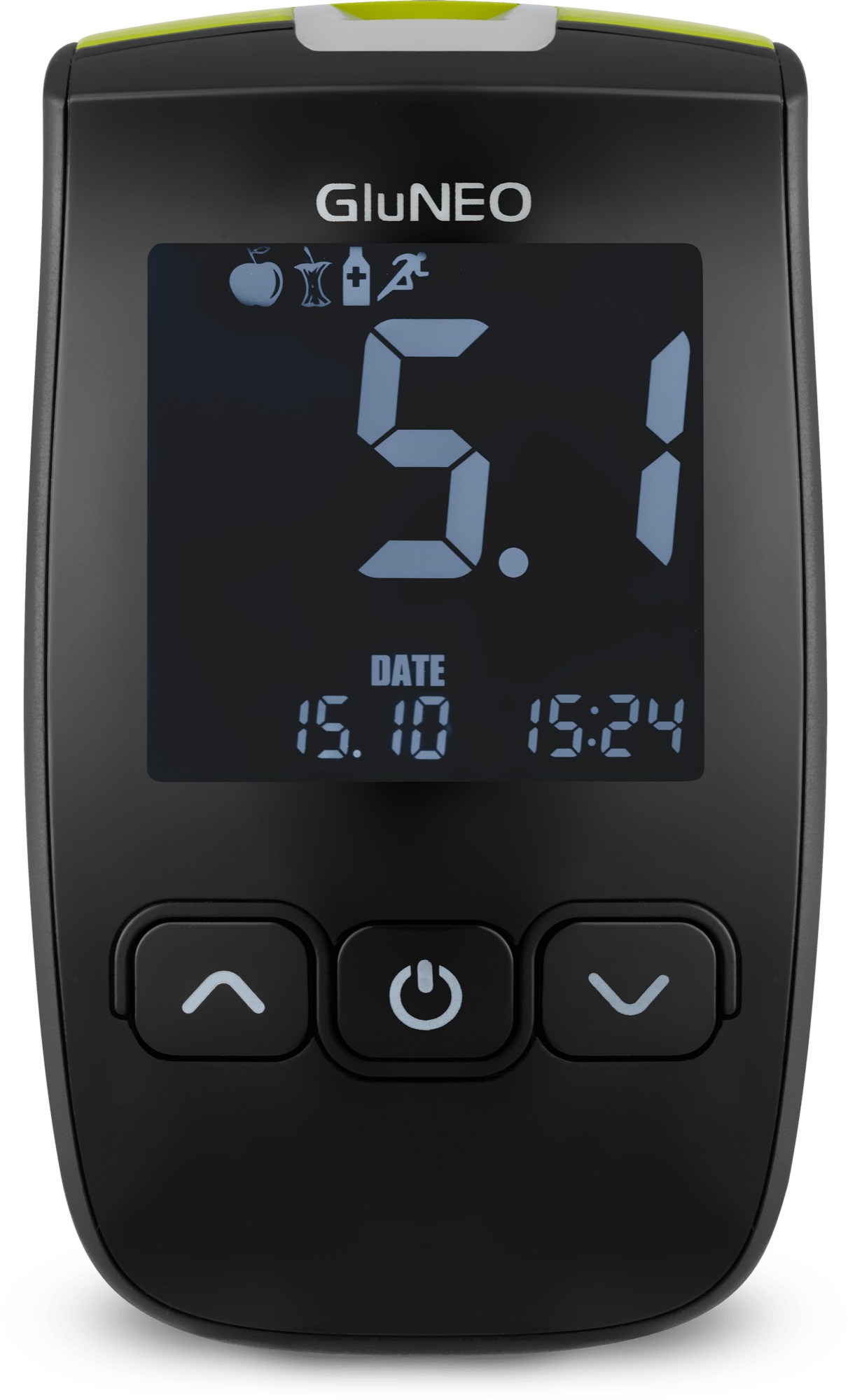 Diagnostické proužky GluNEO jsou určeny pouze ke glukometru GluNeo® – přístroj pro měření hladiny krevní glukózy